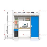 เตียงนอนสองชั้นสไตล์ลอฟท์สำหรับนักเรียนเฟอร์นิเจอร์ห้องนอนปรับแต่งได้ทนทานใช้งานได้อเนกประสงค์มีชั้นวางหนังสือและตู้เสื้อผ้า