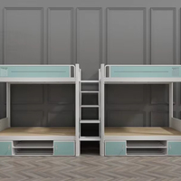 เตียงสองชั้นพร้อมตู้เสื้อผ้าและบันไดระบบอินเตอร์ล็อคโลหะทนทานสำหรับนักเรียนหอพักอพาร์ทเมนต์